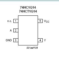 The 74HC1G14GV is an Inverting Schmitt trigger. It provides an inverting buffer function with Schmitt trigger action. The 74HC1G14GV is capable of transforming slowly changing input signals into sharply defined, jitter-free output signals. It has CMOS input switching levels and supply voltage range 2 V to 6 V. The applications of the 74HC1G14GV include Wave and pulse shapers, Astable multivibrators, Monostable multivibrators.