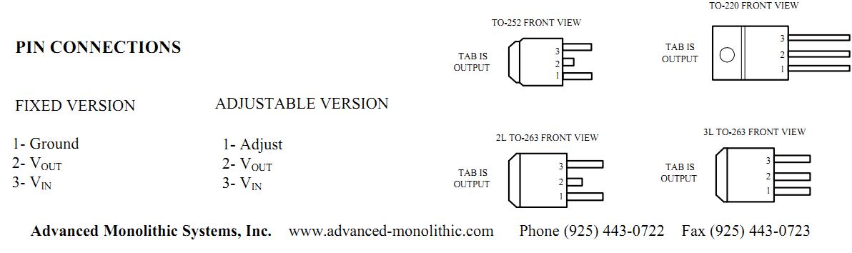 AMS1084CD features: (1)Three Terminal Adjustable or Fixed 1.5V, 2.5V, 2.85V, 3.0V, 3.3V, 3.5V and 5.0V; (2)Output Current of 5A; (3)Operates Down to 1V Dropout; (4)Line Regulation: 0.015%; (5)Load Regulation: 0.1%; (6)TO-220, TO-263 and TO-252 packages available.
