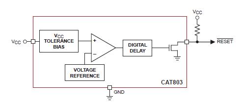 CAT809STBI-GT3 features: (1)Precision monitoring of +5.0V (-5%, -10%, -20%), +3.3V (-5%, -10%), +3.0V (-10%) and +2.5V (-5%) power supplies; (2)Offered in three output configurations: Push-Pull Active HIGH reset; (3)Direct replacements for the MAX803, MAX809 and MAX810 in applications operating over the industrial temperature range; (4)Reset valid down to VCC = 1.0V; (5)6μA power supply current; (6)Power supply transient immunity; (7)Industrial temperature range: -40℃ to +85℃; (8) Available in RoHS-compliant SOT-23 and SC-70 packages.