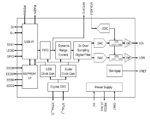 The CM102S+ is a USB Stereo Audio Chip for Speaker Integrated. Minimum external components are needed for building an USB speaker system, which makes the CM102S+ a simple and very cost-effective solution. Since no driver is necessary for audio playback on all major OS. The CM102S+ provides a truly plug-and-play feature for external digital audio playback.