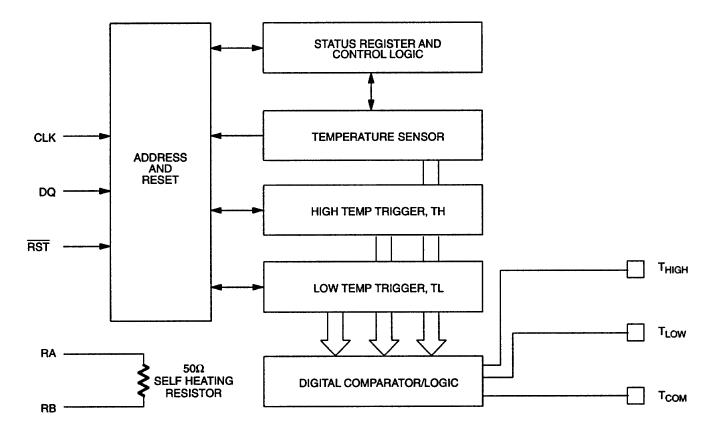 The DS1620S+T&R is a Digital Thermometer and Thermostat, providing 9–bit temperature readings which indicate the temperature of the device. With three thermal alarm outputs, the DS1620S+T&R can also act as a thermostat. THIGH is driven high if the DS1620S+T&R’s temperature is greater than or equal to a user–defined temperature TH. TLOW is driven high if the device’s temperature is less than or equal to a user–defined temperature TL. TCOM is driven high when the temperature exceeds TH and stays high until the temperature falls below that of TL.