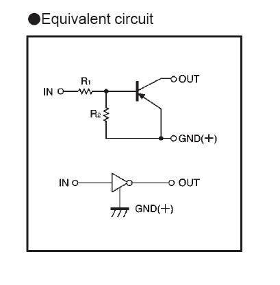 DTA123YKA features: (1) Built-in bias resistors enable the configuration of an inverter circuit without connecting external input resistors (see equivalent circuit); (2) The bias resistors consist of thinfilm resistors with complete isolation to allow positive biasing of the input. They also have the advantage of almost completely eliminating parasitic effects; (3) Only the on/off conditions need to be set for operation, making device design easy.