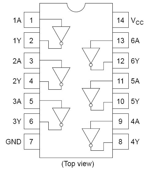 The HD74HC05P is a Hex Inverter (with Open Drain Outputs).