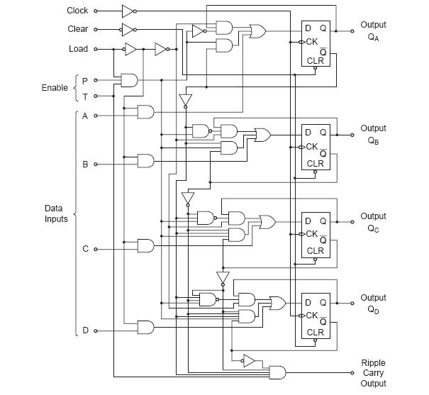 The HD74LS161AP is a Synchronous 4-bit Binary Counter. The HD74LS161AP features an internal carry look-ahead for application in high-speed counting designs. Synchronous operation is provided by having all flip-flops clocked simultaneously so that the outputs changes coincident with each other when so instructed by the count-enable inputs and internal gating. This mode is operation eliminates the output counting spikes that are normally associated with asynchronous (ripple clock) counters. A buffered clock input triggers the four flip-flops on the rising (positive-going) edge of the clock input waveform. The HD74LS161AP is fully programmable; that is, the output may be preset to either level. As presetting is synchronous, setting up a low level at the load input disables the counter and causes the outputs to agree with the setup data after the next clock pulse regardless of the levels of the enable inputs. Low-to-high transitions at the load input should be avoided when the clock is low if the enable inputs are high at or before the transition. The clear function is asynchronous and a low level at the clear input sets all four of the flip-flop outputs low regardless of the levels of clock, load, or enable inputs. The carry look-ahead circuitry provides for cascading counters for n-bit synchronous applications without additional getting. Instrumental in accomplishing this function are two count-enable inputs and a ripple carry output. Both count-enable inputs (P and T) must be high to count, and input T is fed forward to enable the ripple carry output. The ripple carry output thus enabled will produced a high-level output pulse with duration approximately equal to the high-level portion of the QA output. This high-level overflow ripple carry pulse can be used to enable successive cascaded stages. High-to-low-level transitions at the enable P or T inputs should occur only when the clock input is high.