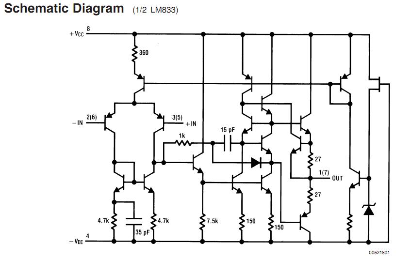 LM833DR2 features: (1)Wide dynamic range: >140dB; (2)Low input noise voltage: 4.5nV/√Hz; (3)High slew rate: 7 V/μs (typ); 5V/μs (min); (4)High gain bandwidth: 15MHz (typ); 10MHz (min); (5)Wide power bandwidth: 120KHz; (6)Low distortion: 0.002%; (7)Low offset voltage: 0.3mV; (8)Large phase margin: 60°; (9)Available in 8 pin MSOP package.