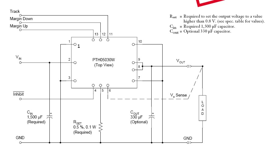 The PTH05030WAH is a high current non-isolated power module from Texas Instruments. The PTH05030WAH is characterized by high efficiencies, and up to 30 A of output current, while occupying a mere 1.64 in2 of PCB area. In terms of cost, size, and performance, the series provides OEM’s with a flexible module that meets the requirements of the most complex and demanding mixed signal applications. The PTH05030WAH includes the most densly populated, multi-processor systems that incorporate high-speed DSP’s, microprocessors, and ASICs.