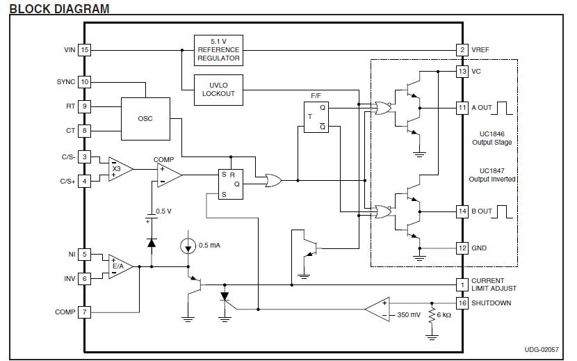 The UC3846N is a control IC. The UC3846N provides all of the necessary features to implement fixed frequency, current mode control schemes while maintaining a minimum external parts count. The superior performance of this technique can be measured in improved line regulation, enhanced load response characteristics, and a simpler, easier-to-design control loop. Topological advantages of the UC3846N include inherent pulse-by-pulse current limiting capability, automatic symmetry correction for push-pull converters, and the ability to parallelpower modules while maintaining equal current sharing.