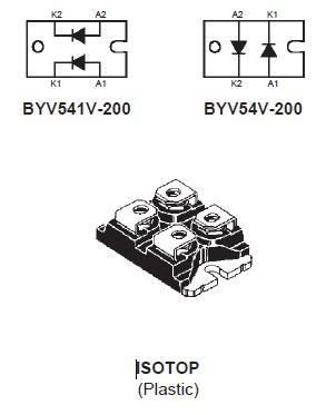 The BYV54V200 is a dual rectifier which is suited for switchmode power supply and high frequency DC to DC converters. Packaged in ISOTOPTM this device is intended for use in low voltage, high frequency inverters, free wheeling and polarity protection applications.